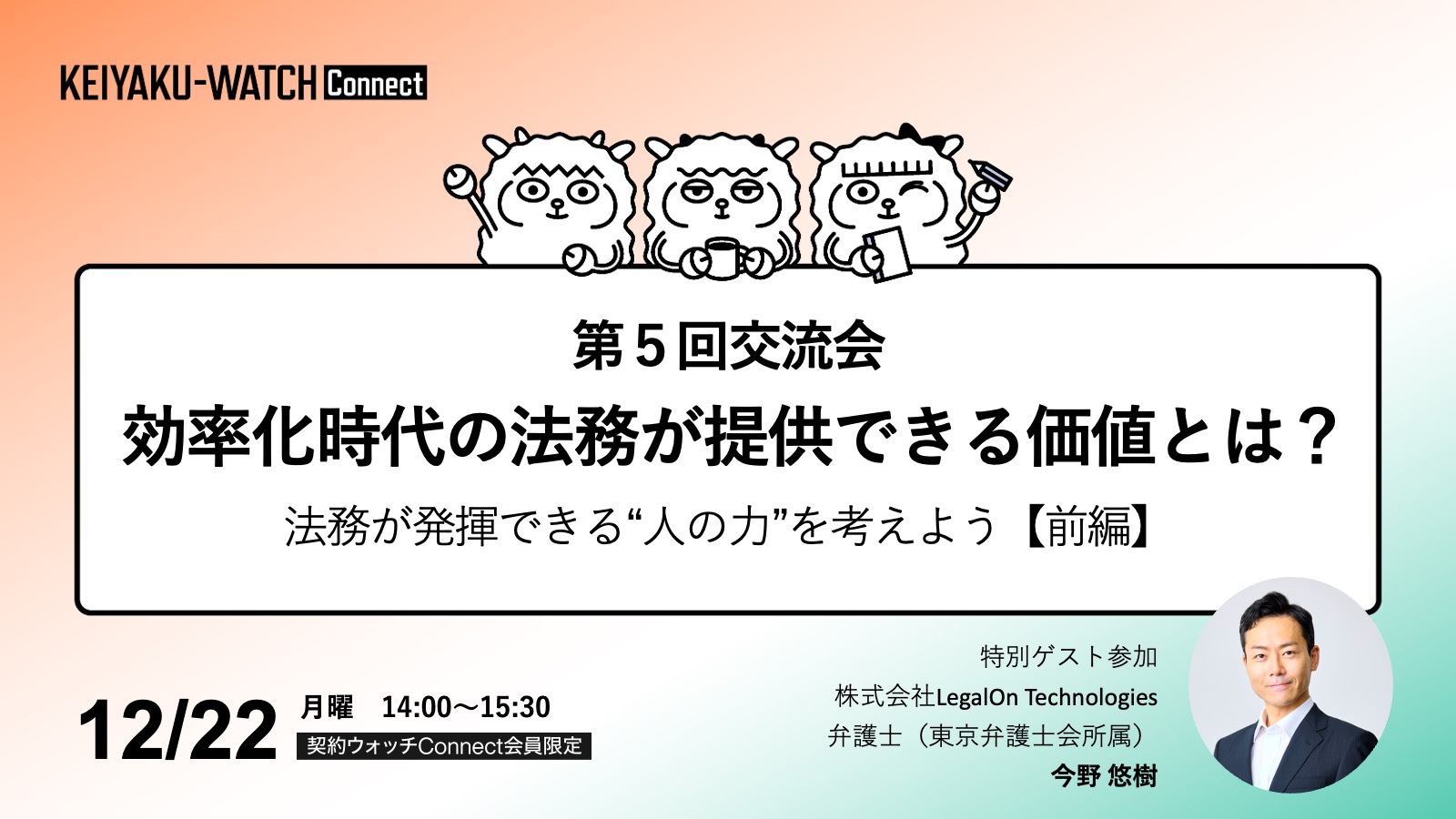 ※ 交流会へのご質問やご要望はコミュニティサイトもしくは契約ウォッチ運営事務局(keiyaku-watch@legalontech.jp)までお問い合わせください。