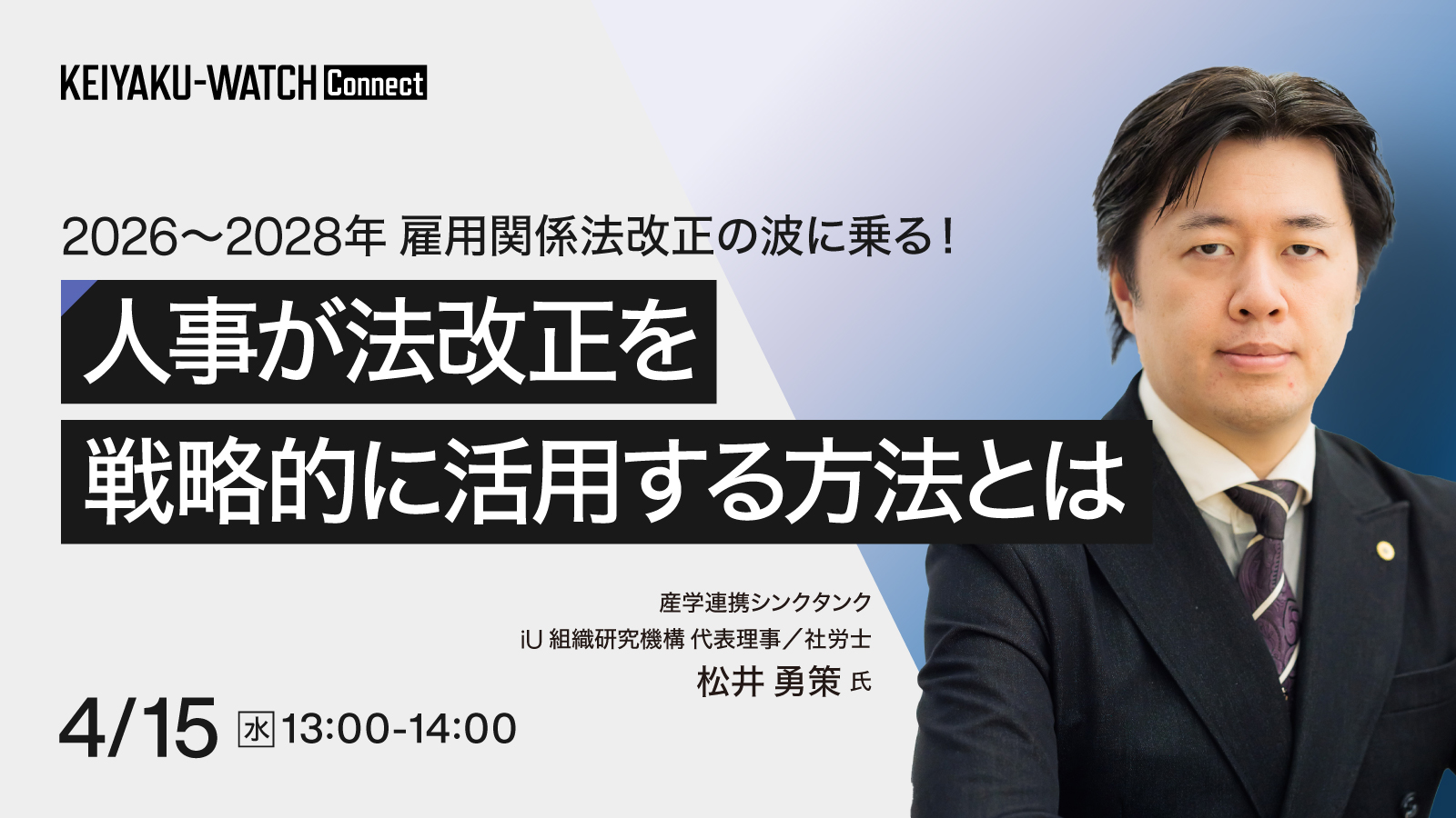 ご解説くださるのは、産学連携シンクタンク(一社) iU組織研究機構 代表理事・社労士の松井勇策先生です。