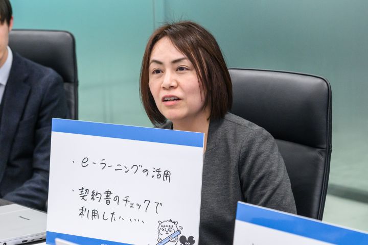 松本 私は、「e-ラーニングの活用」「契約書のチェックで利用したい」です。なかなかテクノロジーに資源を投入できておらず、e-ラーニングくらいしか取り入れていませんが、手作業で行っている契約書のチェックはテクノロジーを活用して、業務の負荷を低減していきたいと思っています。