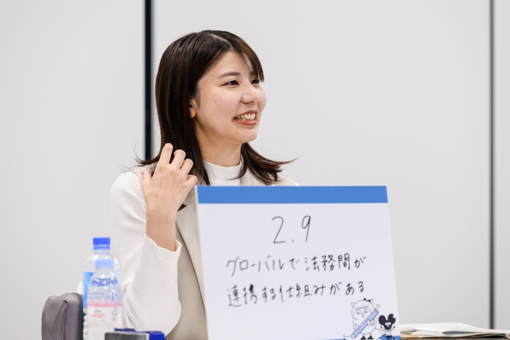 西澤 私は「3」です。以前大企業の法務にいたときに得た経験をもとに、当社で1人法務として一から仕組みを作りました。採用ポリシーも明確にしたうえで新しいメンバーを迎えたので、基本的にはみんな意思疎通できているというか、今のところはうまくいっています。