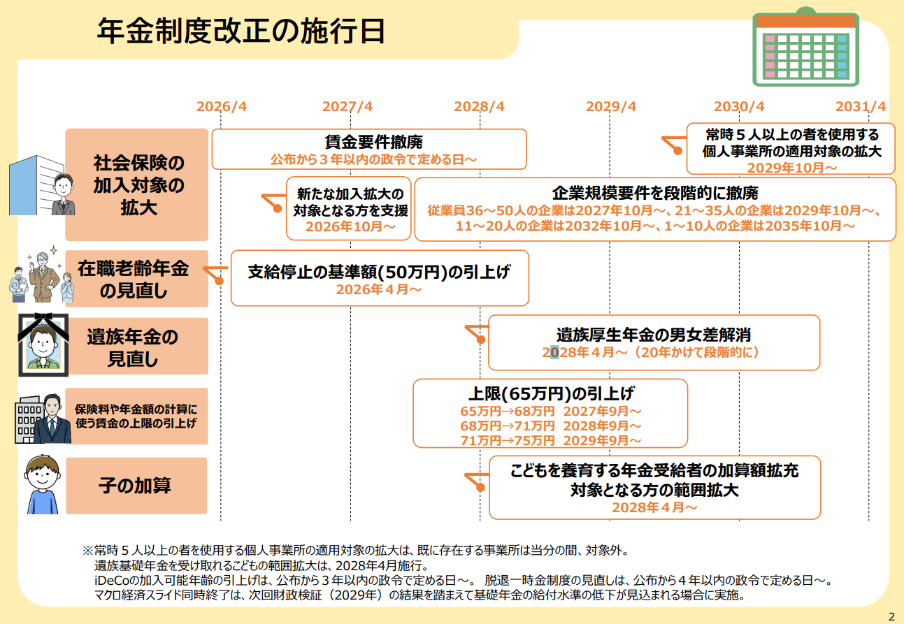 2025年6月20日に年金制度改正法が施行されました。大部分の規定は2026年4月1日以降、段階的に施行される予定です。