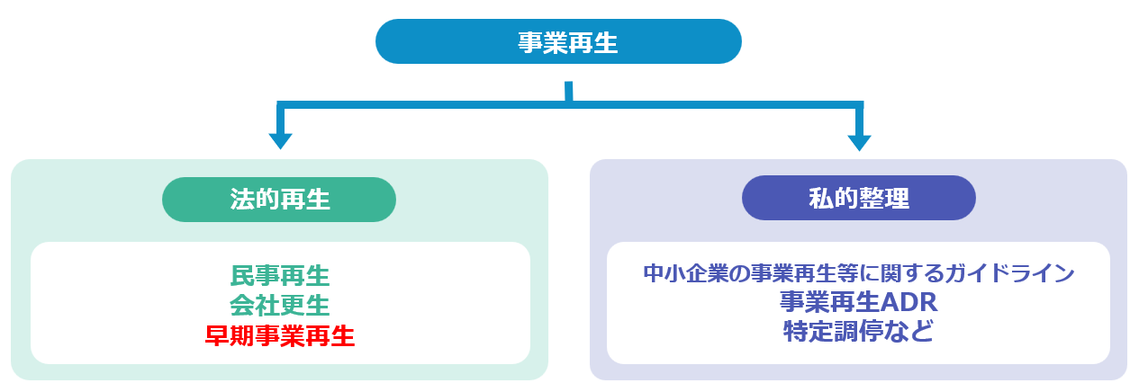 今回新設された早期事業再生は、主に民事再生や会社更生を行うべき段階に至っていない事業者が、早期に事業再生へ取り組むために利用することを想定したものです。
