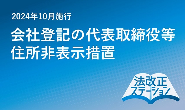 今回のテーマは、2024年10月1日施行の「会社登記の代表取締役等住所非表示措置」です。