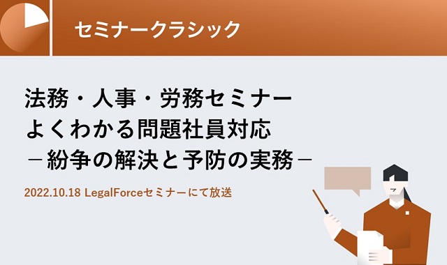 法務・人事・労務セミナー よくわかる問題社員対応-紛争の解決と予防の実務-